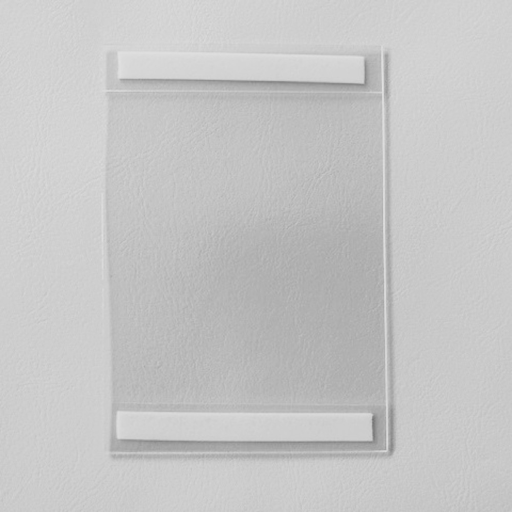 A/4-os méretű PVC laptok, öntapadós csíkkal a hátoldalán.
