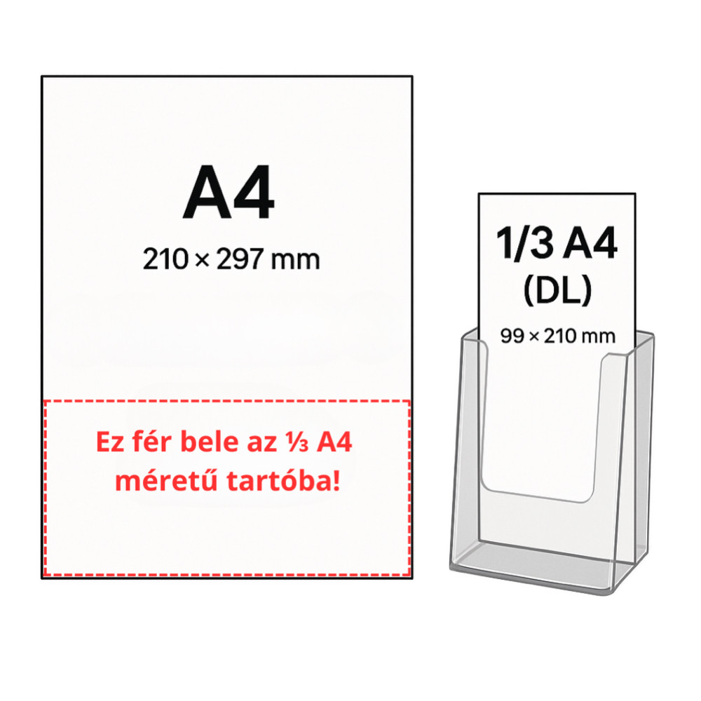 1 rekeszes, akril anyagú szórlólaptartó ismertetőkhöz, tájékoztató füzetekhez, termékleírásokhoz való asztali kihelyezésére. Jól mutat pulton, íróasztalon, várószobában, az így tárolt prospektusok jobban szem előtt vannak és rendezettebb környezet érzetet biztosítanak.
