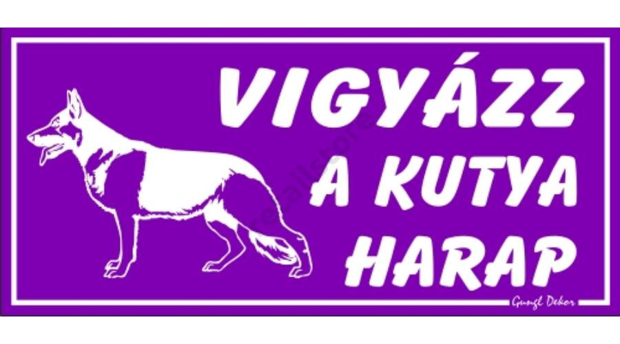 Vigyázz a kutya harap feliratú műanyag tábla, 12,5 x 22,5 cm, Lila